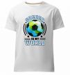 Чоловіча преміум-футболка власного виробництва. Виготовлена з якісної тканини (95% бавовна, 5% еластан) — щільна, м'яка та приємна до тіла. Принт Soccer is my world можна розмістити на грудях, спині або рукаві.