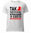 Чоловіча преміум-футболка власного виробництва. Виготовлена з якісної тканини (95% бавовна, 5% еластан) — щільна, м'яка та приємна до тіла. Принт Так виглядає кращий у світі менеджер можна розмістити на грудях, спині або рукаві.
