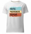 Чоловіча преміум-футболка власного виробництва. Виготовлена з якісної тканини (95% бавовна, 5% еластан) — щільна, м'яка та приємна до тіла. Принт Тато Чоловік Герой можна розмістити на грудях, спині або рукаві.