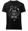 Чоловіча преміум-футболка власного виробництва. Виготовлена з якісної тканини (95% бавовна, 5% еластан) — щільна, м'яка та приємна до тіла. Принт Teach love inspire можна розмістити на грудях, спині або рукаві.