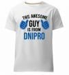 Чоловіча преміум-футболка власного виробництва. Виготовлена з якісної тканини (95% бавовна, 5% еластан) — щільна, м'яка та приємна до тіла. Принт This awesome guy is from Dnipro можна розмістити на грудях, спині або рукаві.