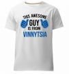 Чоловіча преміум-футболка власного виробництва. Виготовлена з якісної тканини (95% бавовна, 5% еластан) — щільна, м'яка та приємна до тіла. Принт This awesome guy is from Vinnytsia можна розмістити на грудях, спині або рукаві.