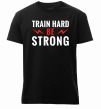 Чоловіча преміум-футболка власного виробництва. Виготовлена з якісної тканини (95% бавовна, 5% еластан) — щільна, м'яка та приємна до тіла. Принт Train hard be strong можна розмістити на грудях, спині або рукаві.