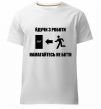 Чоловіча преміум-футболка власного виробництва. Виготовлена з якісної тканини (95% бавовна, 5% еластан) — щільна, м'яка та приємна до тіла. Принт Йдучи з роботи, намагайтесь не бігти можна розмістити на грудях, спині або рукаві.