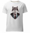 Чоловіча преміум-футболка власного виробництва. Виготовлена з якісної тканини (95% бавовна, 5% еластан) — щільна, м'яка та приємна до тіла. Принт Вовк в краватці можна розмістити на грудях, спині або рукаві.