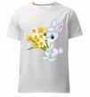Чоловіча преміум-футболка власного виробництва. Виготовлена з якісної тканини (95% бавовна, 5% еластан) — щільна, м'яка та приємна до тіла. Принт Заєць з нарцисами можна розмістити на грудях, спині або рукаві.