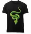 Чоловіча преміум-футболка власного виробництва. Виготовлена з якісної тканини (95% бавовна, 5% еластан) — щільна, м'яка та приємна до тіла. Принт Зелена змія можна розмістити на грудях, спині або рукаві.