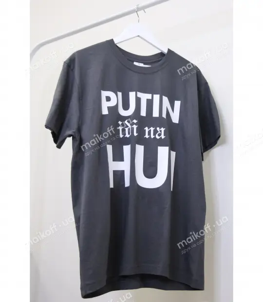 Футболка прямого крою без бічних швів. Тканина 100% бавовна - м'яка та приємна на дотик. Після прання при правильному догляді футболка не розтягується, не сідає і не линяє. Нанести принт Putin idi na hui на футболку можна на груди, на спину, на рукав. Колір принта можна замовити будь-який!