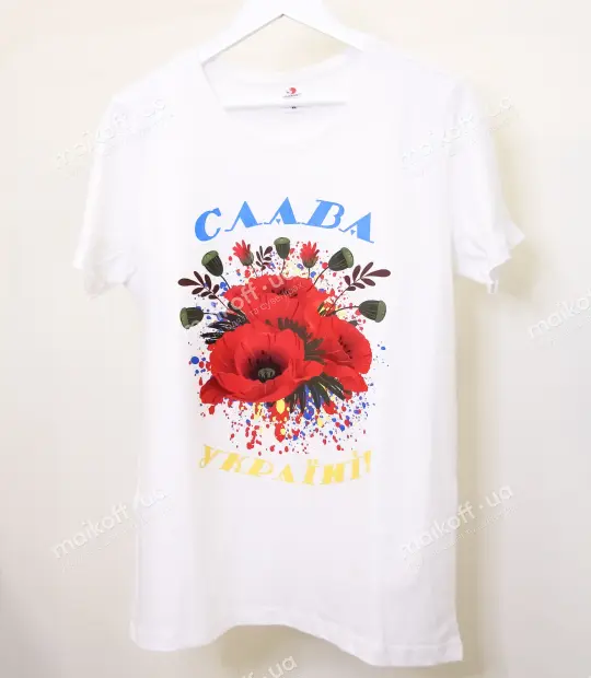Футболка прямого крою без бічних швів. Тканина 100% бавовна - м'яка та приємна на дотик. Після прання при правильному догляді футболка не розтягується, не сідає і не линяє. Нанести принт Слава Україні! (маки) на футболку можна на груди, на спину, на рукав. Колір принта можна замовити будь-який!