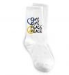 Шкарпетки LOVE PEACE з якісної бавовни: добре дихають, вбирають вологу та залишають ноги сухими. Посилені мисок і п’ята підвищують зносостійкість. Еластична резинка фіксує, не здавлюючи.