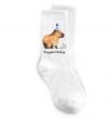 Шкарпетки Capybirthday з якісної бавовни: добре дихають, вбирають вологу та залишають ноги сухими. Посилені мисок і п’ята підвищують зносостійкість. Еластична резинка фіксує, не здавлюючи.