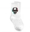 Шкарпетки Череп в навушниках з якісної бавовни: добре дихають, вбирають вологу та залишають ноги сухими. Посилені мисок і п’ята підвищують зносостійкість. Еластична резинка фіксує, не здавлюючи.