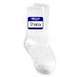 Шкарпетки Hello my name is Diana з якісної бавовни: добре дихають, вбирають вологу та залишають ноги сухими. Посилені мисок і п’ята підвищують зносостійкість. Еластична резинка фіксує, не здавлюючи.