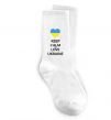 Шкарпетки Keep calm and love Ukraine з якісної бавовни: добре дихають, вбирають вологу та залишають ноги сухими. Посилені мисок і п’ята підвищують зносостійкість. Еластична резинка фіксує, не здавлюючи.