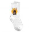 Шкарпетки Кролик в жовтому кругу з якісної бавовни: добре дихають, вбирають вологу та залишають ноги сухими. Посилені мисок і п’ята підвищують зносостійкість. Еластична резинка фіксує, не здавлюючи.