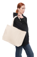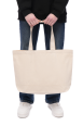 Розмір виробу — 51 × 33 × 12 см, ручки — 55 × 4 см (можлива похибка ±2 см). Сумка виготовляється з високоякісної саржі щільністю 240 г/м²: чорна тканина містить 50% бавовна / 50% поліестер, бежева — 100% бавовна, що забезпечує довговічність та стійкість до зношування.