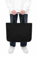 Розмір виробу — 51 × 33 × 12 см, ручки — 55 × 4 см (можлива похибка ±2 см). Сумка виготовляється з високоякісної саржі щільністю 240 г/м²: чорна тканина містить 50% бавовна / 50% поліестер, бежева — 100% бавовна, що забезпечує довговічність та стійкість до зношування.