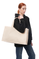 Розмір сумки — 51 × 32 × 15 см, довжина ручок — 60 × 4 см (можлива похибка ±2 см). Сумка виготовляється із саржі щільністю 240 г/м²: чорна тканина має склад 50% бавовна / 50% поліестер, бежева — 100% бавовна, що забезпечує міцність і тривалий термін служби.