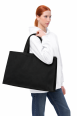 Розмір сумки — 51 × 32 × 15 см, довжина ручок — 60 × 4 см (можлива похибка ±2 см). Сумка виготовляється із саржі щільністю 240 г/м²: чорна тканина має склад 50% бавовна / 50% поліестер, бежева — 100% бавовна, що забезпечує міцність і тривалий термін служби.