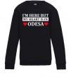 Дитячий світшот - прямий крій, усередині флісове утеплення. Склад: 80% бавовна, 20% синтетика. Нанести принт I'm here but my heart is in Odesa на дитячий світшот можна на груди, на спину, на рукав. Колір принта можна замовити будь-який!