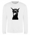 Світшот моделі унісекс - прямий крій, вільний (не оверсайз) фасон; усередині флісове утеплення. Склад: 80% бавовна, 20% синтетика. Нанести принт Доберман показує язик на світшот можна на груди, на спину, на рукав. Колір принта можна замовити будь-який!
