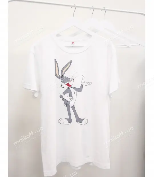 Футболка приталеного крою із бічними швами. Тканина 100% бавовна - м'яка та приємна на дотик. Після прання при правильному догляді футболка не розтягується, не сідає і не линяє. Нанести принт Бакс Банні на футболку можна на груди, на спину, на рукав. Колір принта можна замовити будь-який!