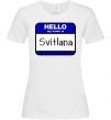 Футболка приталеного крою із бічними швами. Тканина 100% бавовна - м'яка та приємна на дотик. Після прання при правильному догляді футболка не розтягується, не сідає і не линяє. Нанести принт Hello my name is Svitlana на футболку можна на груди, на спину, на рукав. Колір принта можна замовити будь-який!