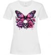 Футболка приталеного крою із бічними швами. Тканина 100% бавовна - м'яка та приємна на дотик. Після прання при правильному догляді футболка не розтягується, не сідає і не линяє. Нанести принт Метелик череп та троянди на футболку можна на груди, на спину, на рукав. Колір принта можна замовити будь-який!