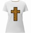Жіноча преміум-футболка власного виробництва приталеного крою. Виготовлена з якісної тканини (95% бавовна, 5% еластан) — щільна, м'яка та приємна до тіла. Принт Леопардовий хрест можна розмістити на грудях, спині або рукаві.