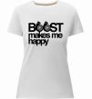 Жіноча преміум-футболка власного виробництва приталеного крою. Виготовлена з якісної тканини (95% бавовна, 5% еластан) — щільна, м'яка та приємна до тіла. Принт Boost happy можна розмістити на грудях, спині або рукаві.