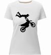Жіноча преміум-футболка власного виробництва приталеного крою. Виготовлена з якісної тканини (95% бавовна, 5% еластан) — щільна, м'яка та приємна до тіла. Принт moto tricks можна розмістити на грудях, спині або рукаві.