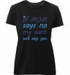 Жіноча преміум-футболка власного виробництва приталеного крою. Виготовлена з якісної тканини (95% бавовна, 5% еластан) — щільна, м'яка та приємна до тіла. Принт If mom says no my aunt will say yes можна розмістити на грудях, спині або рукаві.
