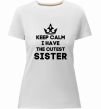 Жіноча преміум-футболка власного виробництва приталеного крою. Виготовлена з якісної тканини (95% бавовна, 5% еластан) — щільна, м'яка та приємна до тіла. Принт Keep calm i have the cutest sister можна розмістити на грудях, спині або рукаві.