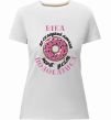 Жіноча преміум-футболка власного виробництва приталеного крою. Виготовлена з якісної тканини (95% бавовна, 5% еластан) — щільна, м'яка та приємна до тіла. Принт Віка не солодкий пончик щоб усім подобатись можна розмістити на грудях, спині або рукаві.