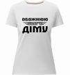 Жіноча преміум-футболка власного виробництва приталеного крою. Виготовлена з якісної тканини (95% бавовна, 5% еластан) — щільна, м'яка та приємна до тіла. Принт Обожнюю свого Діму можна розмістити на грудях, спині або рукаві.