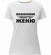 Жіноча преміум-футболка власного виробництва приталеного крою. Виготовлена з якісної тканини (95% бавовна, 5% еластан) — щільна, м'яка та приємна до тіла. Принт Обожнюю свого Женю можна розмістити на грудях, спині або рукаві.