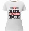 Жіноча преміум-футболка власного виробництва приталеного крою. Виготовлена з якісної тканини (95% бавовна, 5% еластан) — щільна, м'яка та приємна до тіла. Принт Кіра вирішує все можна розмістити на грудях, спині або рукаві.