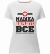 Жіноча преміум-футболка власного виробництва приталеного крою. Виготовлена з якісної тканини (95% бавовна, 5% еластан) — щільна, м'яка та приємна до тіла. Принт Машка вирішує все можна розмістити на грудях, спині або рукаві.