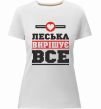 Жіноча преміум-футболка власного виробництва приталеного крою. Виготовлена з якісної тканини (95% бавовна, 5% еластан) — щільна, м'яка та приємна до тіла. Принт Леська вирішує все можна розмістити на грудях, спині або рукаві.