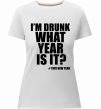 Жіноча преміум-футболка власного виробництва приталеного крою. Виготовлена з якісної тканини (95% бавовна, 5% еластан) — щільна, м'яка та приємна до тіла. Принт I am drunk, what year is it? #it's New Year можна розмістити на грудях, спині або рукаві.