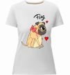 Жіноча преміум-футболка власного виробництва приталеного крою. Виготовлена з якісної тканини (95% бавовна, 5% еластан) — щільна, м'яка та приємна до тіла. Принт Pug можна розмістити на грудях, спині або рукаві.