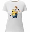Жіноча преміум-футболка власного виробництва приталеного крою. Виготовлена з якісної тканини (95% бавовна, 5% еластан) — щільна, м'яка та приємна до тіла. Принт Minion Stuart можна розмістити на грудях, спині або рукаві.