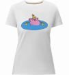 Жіноча преміум-футболка власного виробництва приталеного крою. Виготовлена з якісної тканини (95% бавовна, 5% еластан) — щільна, м'яка та приємна до тіла. Принт Папа Свин і качечки можна розмістити на грудях, спині або рукаві.