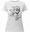 Жіноча преміум-футболка власного виробництва приталеного крою. Виготовлена з якісної тканини (95% бавовна, 5% еластан) — щільна, м'яка та приємна до тіла. Принт Супер Роккі можна розмістити на грудях, спині або рукаві.