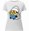 Жіноча преміум-футболка власного виробництва приталеного крою. Виготовлена з якісної тканини (95% бавовна, 5% еластан) — щільна, м'яка та приємна до тіла. Принт Посіпака Новий Рік можна розмістити на грудях, спині або рукаві.