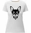 Жіноча преміум-футболка власного виробництва приталеного крою. Виготовлена з якісної тканини (95% бавовна, 5% еластан) — щільна, м'яка та приємна до тіла. Принт Чихуахуа можна розмістити на грудях, спині або рукаві.
