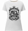 Жіноча преміум-футболка власного виробництва приталеного крою. Виготовлена з якісної тканини (95% бавовна, 5% еластан) — щільна, м'яка та приємна до тіла. Принт March 1975 awesome можна розмістити на грудях, спині або рукаві.