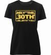 Жіноча преміум-футболка власного виробництва приталеного крою. Виготовлена з якісної тканини (95% бавовна, 5% еластан) — щільна, м'яка та приємна до тіла. Принт May the 30th be with you можна розмістити на грудях, спині або рукаві.