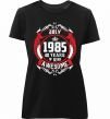 Жіноча преміум-футболка власного виробництва приталеного крою. Виготовлена з якісної тканини (95% бавовна, 5% еластан) — щільна, м'яка та приємна до тіла. Принт July 1985 40 years of being Awesome можна розмістити на грудях, спині або рукаві.