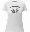 Жіноча преміум-футболка власного виробництва приталеного крою. Виготовлена з якісної тканини (95% бавовна, 5% еластан) — щільна, м'яка та приємна до тіла. Принт Java programmers wear glasses because they can't C можна розмістити на грудях, спині або рукаві.